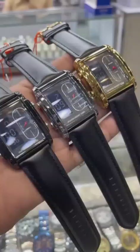 DOUBLE TIME ANALOG DIGITAL LEATHER STRAP LIGHT ALARM STOPWATCH DAY DATE MONTH WATER RESISTANT 30M